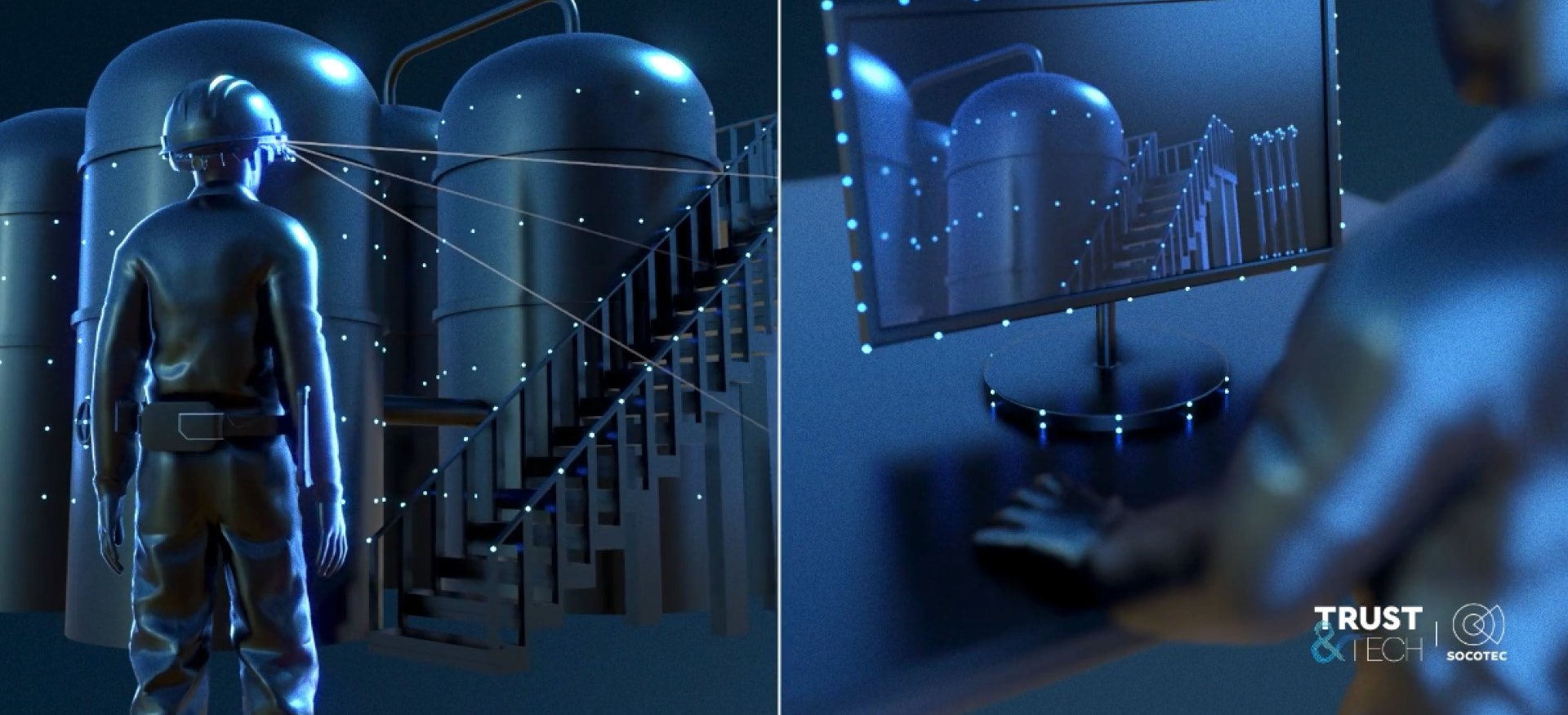 Ainsi est née la série “Trust and Tech”. Nous faisons l’expérience d’une plongée totale et immersive dans les expertises de pointe de l’entreprise. L’action se déroule au coeur d’un incident nucléaire à 28 000km/h autour de la terre ou à 200m sous terre pour capter les secousses d’un tremblement de terre. Le spectateur vit l’expérience Socotec de l’intérieur grâce à une direction artistique full 3D. Un type d’interview encore jamais vu auparavant dans ce domaine !