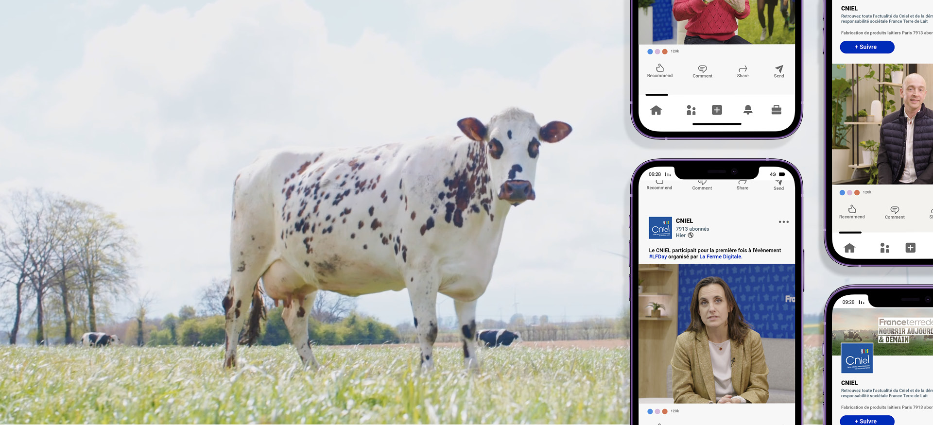 Nous challengeons la demande, convaincus que l’annulation de ce rendez-vous permet au CNIEL de dégager du temps pour partir sur le terrain aux 4 coins de la France et retrouver les acteurs de la filière. Notre proposition est alors un dispositif digital sous forme d’un rendez-vous média régulier, tenant à la fois compte des enjeux de notre client, des attentes de ses cibles multiples (Key Opinion Leaders, partenaires, politiques, interprofessions, agriculteurs…, et de la nécessité de réaliser des contenus à la fois dynamiques et synthétiques.